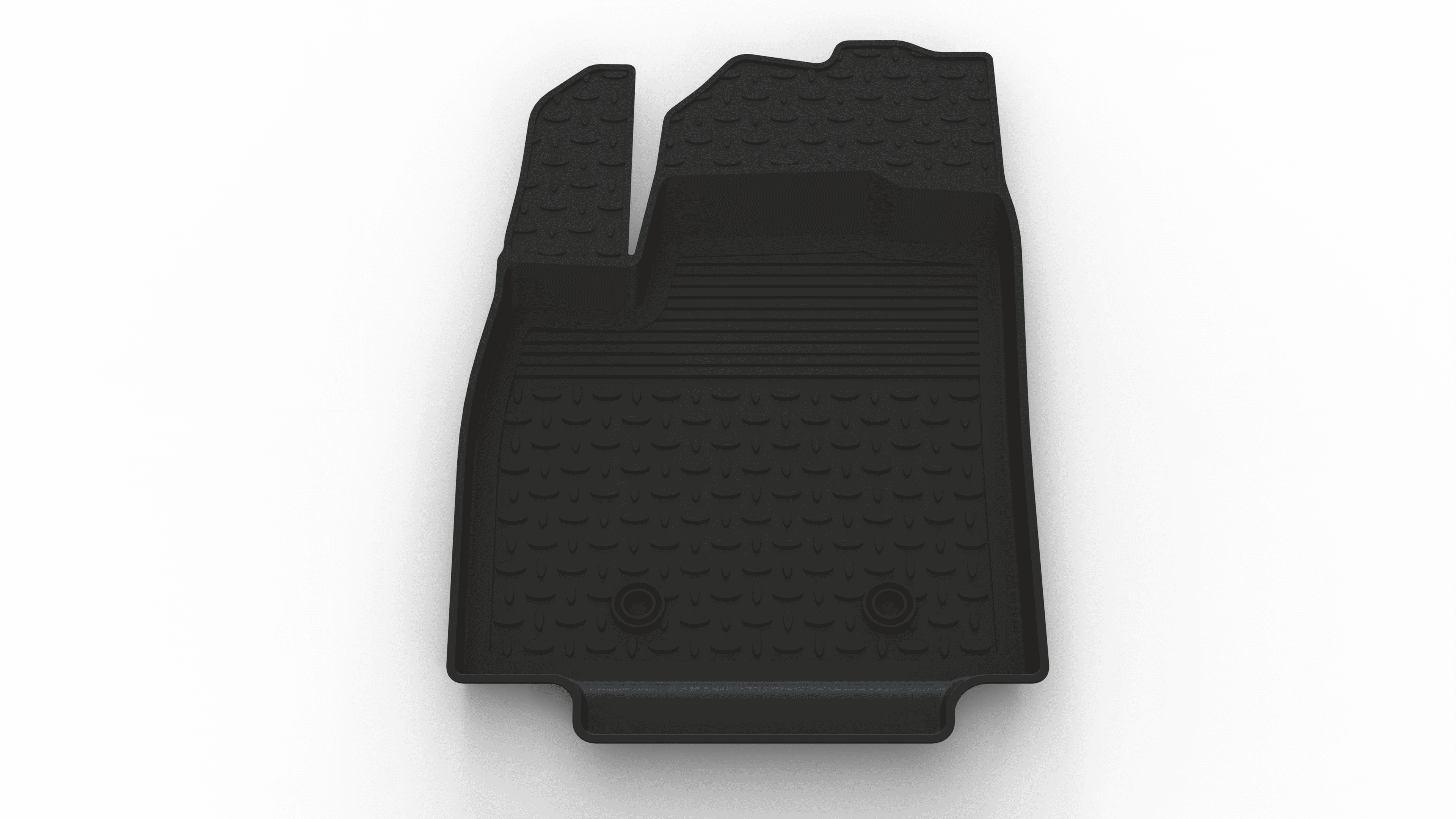 - соответствие контуру пола салона необходимо, чтобы исключить возможность попадания пыли и грязи под коврик. В их конструкции отсутствуют швы и стыки, куда может просочиться вода или попасть мелкий мусор;